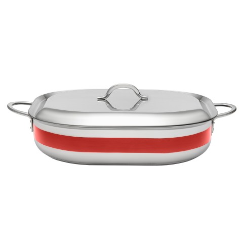 Country French X Oven Dish, 7 qt., 15" x 11" x 4", oblong, with lid, induction bottom, stainless steel, red