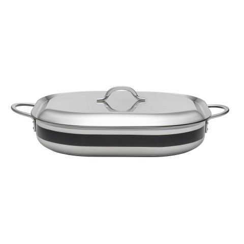 Country French X Pan, 5 qt., 15" x 11" x 2-7/8", oblong, with lid, induction bottom, stainless steel, black