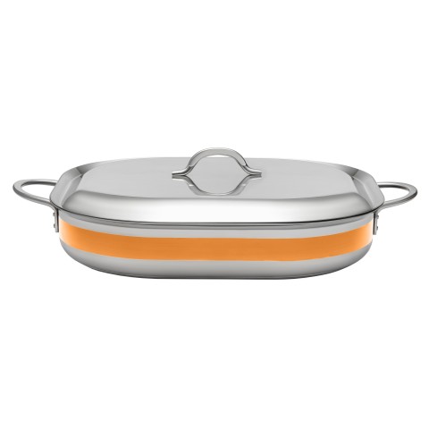 Country French X Pan, 5 qt., 15" x 11" x 2-7/8", oblong, with lid, induction bottom, stainless steel, orange
