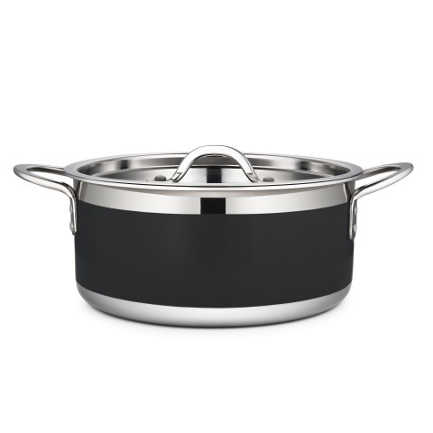 Country French X Pot, 4 qt. 9 oz., 9-3/8" dia. x 4-3/8"H, round, with lid, induction bottom, stainless steel, black