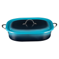 Country French X - Ombre French Oven, 7 qt, 15" x 11" x 4", Oblong, With Lid, (2) 2" Round Riveted Handles, Oven & Dishwasher Safe, Induction Ready, 5 Ply, Stainless Steel, Caribbean Blue