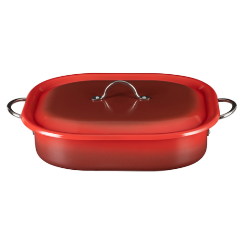 Country French X - Ombre French Oven, 7 qt, 15" x 11" x 4", Oblong, With Lid, (2) 2" Round Riveted Handles, Oven & Dishwasher Safe, Induction Ready, 5 Ply, Stainless Steel, Crimson Red