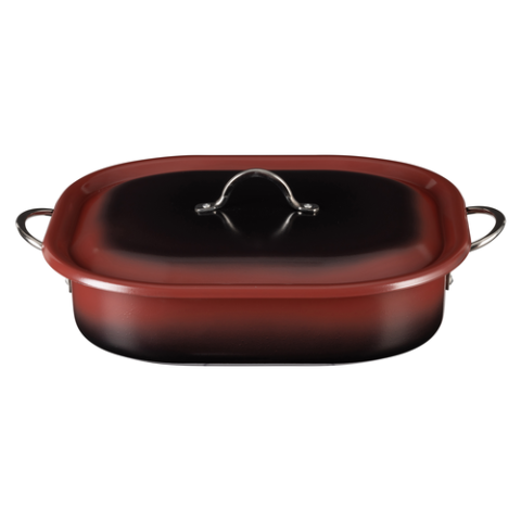 Country French X - Ombre French Oven, 7 qt, 15" x 11" x 4", Oblong, With Lid, (2) 2" Round Riveted Handles, Oven & Dishwasher Safe, Induction Ready, 5 Ply, Stainless Steel, Merlot