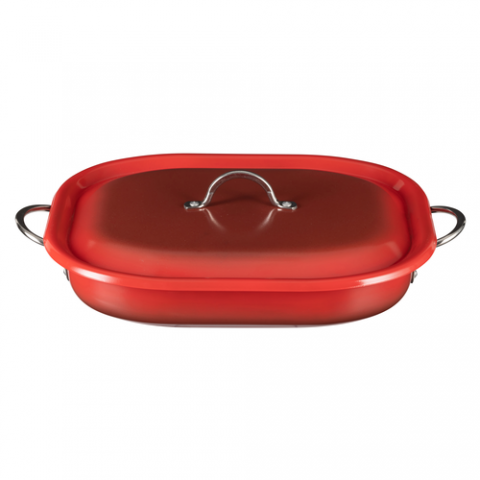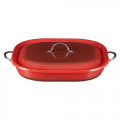 Country French X - Ombre Roasting Pan, 5 qt, 15" x 11" x 2 7/8", Oblong, With Lid, (2) 2" Round Riveted Handles, Oven & Dishwasher Safe, Induction Ready, 5 Ply, Stainless Steel, Crimson Red