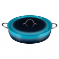 Country French X - Ombre Brazier Pot, 9 qt, 14 3/4" dia x 3 3/8" H, Round, With Lid, (2) 2" Round Riveted Handles, Oven & Dishwasher Safe, Induction Ready, 5 Ply, Stainless Steel, Caribbean Blue