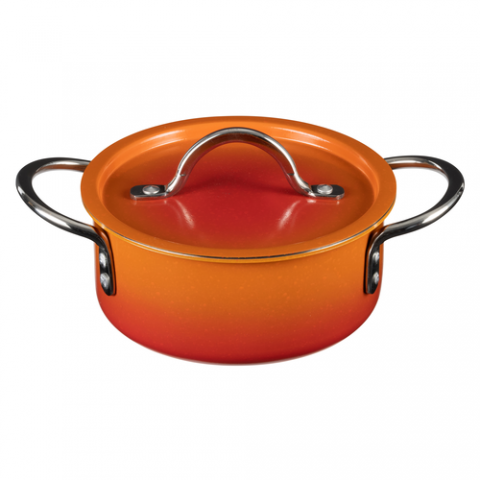 Country French X - Ombre Sauce Pot, 1 qt 22 oz, 7" x 3" , Round, With Lid, (2) 2" Round Riveted Handles, Oven & Dishwasher Safe, Induction Ready, 5 Ply, Stainless Steel, Tangerine