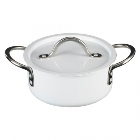Country French X - Ombre Sauce Pot, 1 qt 22 oz, 7" x 3" , Round, With Lid, (2) 2" Round Riveted Handles, Oven & Dishwasher Safe, Induction Ready, 5 Ply, Stainless Steel, White