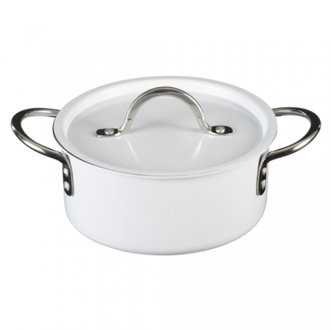 Country French X - Ombre Sauce Pot, 2 qt 9 oz, 7-3/4 DIA X 3-1/2H, Round, With Lid, (2) 2" Round Riveted Handles, Oven & Dishwasher Safe, Induction Ready, 5 Ply, Stainless Steel, White