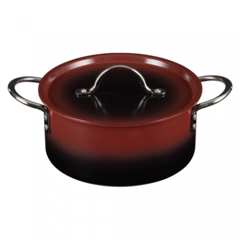 Country French X - Ombre Sauce Pot, 3 qt 9 oz, 8 5/8"D X 3 7/8"H, Round, With Lid, (2) 2" Round Riveted Handles, Oven & Dishwasher Safe, Induction Ready, 5 Ply, Stainless Steel, Merlot