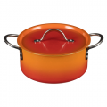 Country French X - Ombre Sauce Pot, 3 qt 9 oz, 8 5/8"D X 3 7/8"H, Round, With Lid, (2) 2" Round Riveted Handles, Oven & Dishwasher Safe, Induction Ready, 5 Ply, Stainless Steel, Tangerine