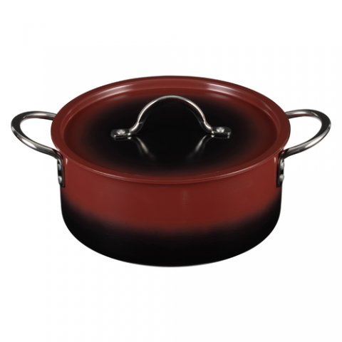 Country French X - Ombre Sauce Pot, 4 qt 9 oz, 9.4″ Dia x 4.4″ H, Round, With Lid, (2) 2" Round Riveted Handles, Oven & Dishwasher Safe, Induction Ready, 5 Ply, Stainless Steel, Merlot