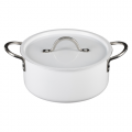 Country French X - Ombre Sauce Pot, 4 qt 9 oz, 9.4″ Dia x 4.4″ H, Round, With Lid, (2) 2" Round Riveted Handles, Oven & Dishwasher Safe, Induction Ready, 5 Ply, Stainless Steel, White