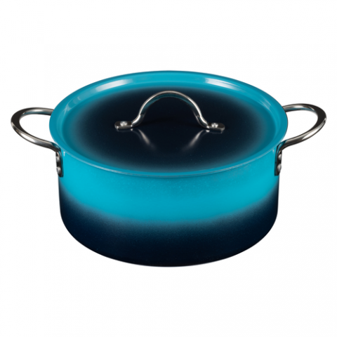 Country French X - Ombre Sauce Pot, 5 qt 22 oz, 10″ Dia x 4.75″ H, Round, With Lid, (2) 2" Round Riveted Handles, Oven & Dishwasher Safe, Induction Ready, 5 Ply, Stainless Steel, Caribbean Blue