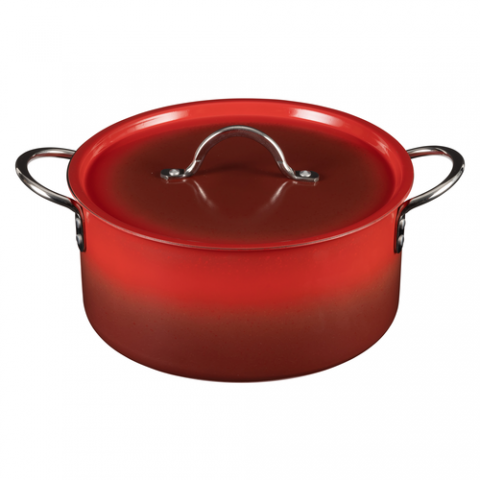 Country French X - Ombre Sauce Pot, 5 qt 22 oz, 10″ Dia x 4.75″ H, Round, With Lid, (2) 2" Round Riveted Handles, Oven & Dishwasher Safe, Induction Ready, 5 Ply, Stainless Steel, Crimson Red