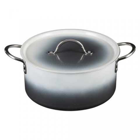Country French X - Ombre Sauce Pot, 5 qt 22 oz, 10″ Dia x 4.75″ H, Round, With Lid, (2) 2" Round Riveted Handles, Oven & Dishwasher Safe, Induction Ready, 5 Ply, Stainless Steel, Shadow Gray