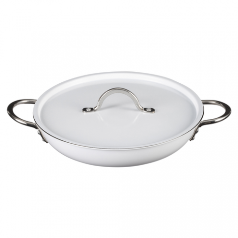Country French X - Ombre Saute Pan, 2 qt 12 oz, 11″ Dia x 2″ H, Round, With Lid, (2) 2" Round Riveted Handles, Oven & Dishwasher Safe, Induction Ready, 5 Ply, Stainless Steel, White