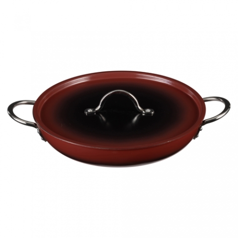 Country French X - Ombre Saute Pan, 3 qt 4 oz, 11.25″ Dia x 2.75″ H, Round, With Lid, (2) 2" Round Riveted Handles, Oven & Dishwasher Safe, Induction Ready, 5 Ply, Stainless Steel, Merlot