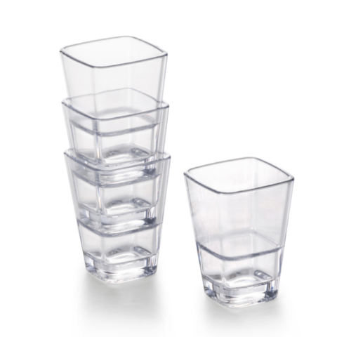 Square Shot Glass, 3 oz., 2.13" x 3"H, Stackable, Anti-Jamming, SAN, Clear