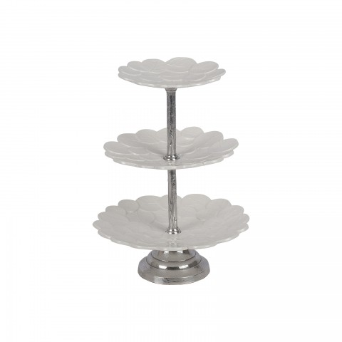 Cake Stand, 3-tier, 16"H, 12" dia. bottom tier,10-1/4" middle tier, 8" dia. top tier , round, aluminum with ceramic-look coating, Sandstone, Platinum Gray