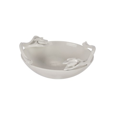 Bowl, 1 qt., 9-5/16" dia. x 2-13/16"H, round, footed, with leaf handles, aluminum with ceramic-look coating, Sandstone, Ivory