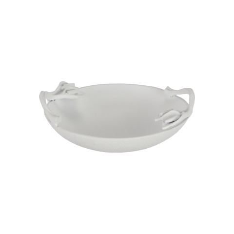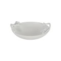 Bowl, 1-3/4 qt., 11-5/8" dia. x 3-1/2"H, round, footed, with leaf handles, aluminum with ceramic-look coating, Sandstone, Calypso Green