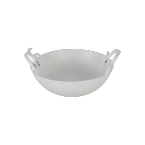 Bowl, 1-7/8 qt., 11-13/16" dia. x 3-15/16"H, round, with antler handles, aluminum with ceramic-look coating, Sandstone, Smoke Gray