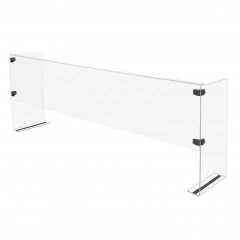 Bartop Health Safety Shield, 66"W x 12"D x 24"H, with 10"H serving window below shield, collapsible, with Velcro for more stability, acrylic, clear, Made in USA