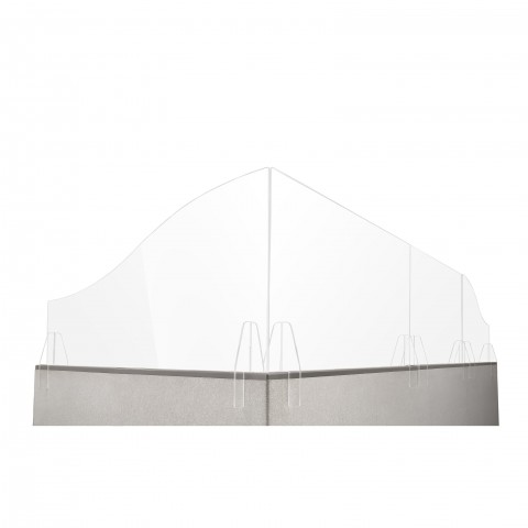 Office Cubicle Partition Shield, 36" x 5" x 23-3/4" (12" low side), wave design, acrylic, clear, Made in USA