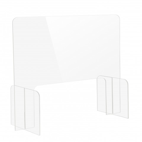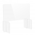 Tabletop Health Safety Shield, 36"W x 12"D x 31-3/4"H, with 24-1/2"W x 12"H transaction window, polished edges, acrylic, clear, Made in USA (7-10 day lead-time)