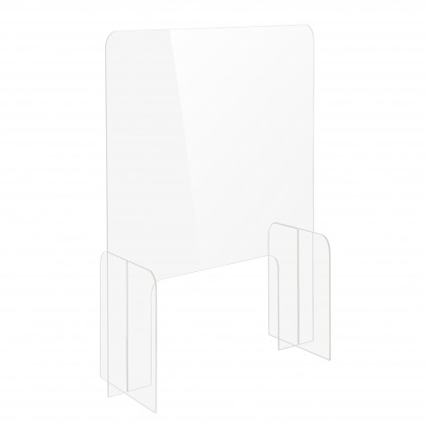 Tabletop Health Safety Shield, 18"W x 12"D x 32"H, with 12"W x 8"H transaction window, polished edges, acrylic, clear, Made in USA (7-10 day lead-time)