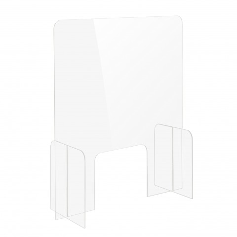 Tabletop Health Safety Shield, 23-3/4"W x 12"D x 32"H, with 12"W x 8"H transaction window, polished edges, acrylic, clear, Made in USA (7-10 day lead-time)