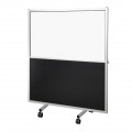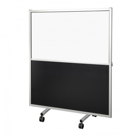 Restaurant Table Partition, 48"W x 18"D x 60"H, lift-off hinge for modular configurations, 2" casters, anodized aluminum frame, clear acrylic shield, black privacy panel