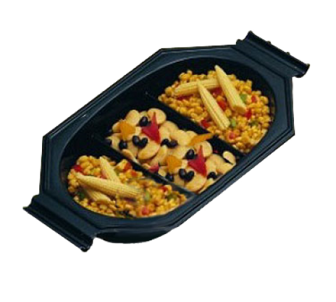 Au Gratin Dish, 1-1/2 qt., 8" x 14", 3-compartment, oblong, aluminum with ceramic-look coating, Sandstone, Pearl White
