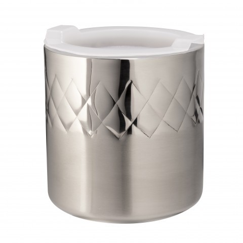 Cold Wave Salad Dressing Container, 28 oz., 5-1/8" dia. x 5"H, round, diamond design, triple wall, pre-freezing bowl keeps food cold for 8 hours at ambient temperature, stackable plastic cover, stainless steel