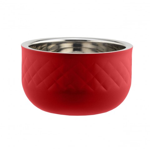 Cold Wave Bowl, 1 qt. 20 oz., 7-1/8" dia. x 4-1/16"H, round, diamond design, triple wall, pre-freezing bowl keeps food cold for 8 hours at ambient temperature, stackable plastic cover, stainless steel, red finish