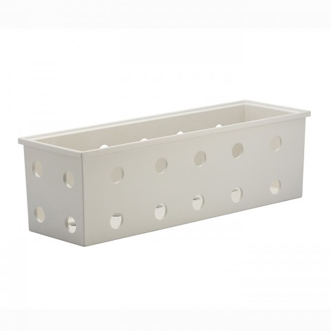 Smart Bowl, narrow shotgun, 6" deep, 10 qt. 16 oz., 5-1/4" x 20-1/10", rectangular, perforated, aluminum with ceramic-looking coating, Sandstone, Black Speckled