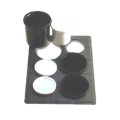 Tile Tray, custom cut, 19" x 21-1/2", with 6 cutouts for (3) #9203 & (3) #9202, aluminum with ceramic-look coating, Sandstone, Dark Blue