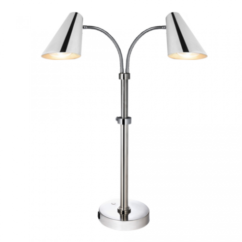 Heat Double Lamp, 23"H, 500kW, 4.4 amps, asymmetrical stainless steel shade, telescope neck, daisy chain capable, free standing, mirror finish