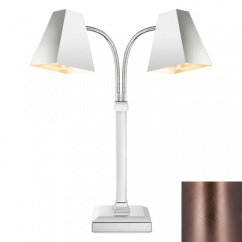 Double Heat Lamp, 9" L X 9" W X 27" H, Square, (2) 250 Watt Bulbs, Portable/Countertop/Freestanding, Adjustable Flexible Neck, Stainless Steel, Leather Finish, 110V/60/1-Ph, 4.4 Amps, 500 Watts, 5' Cord, Nema 5-15P (Daisy Chain Capable)