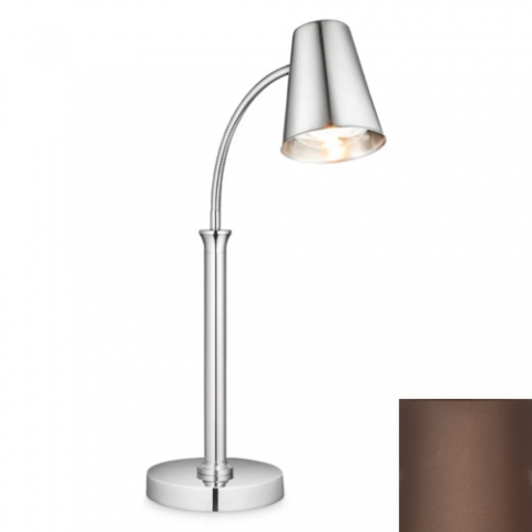 Single Heat Lamp, 9" L X 9" W X 27" H, Round, (1) 250 Watt Bulb, Portable/Countertop/Freestanding, Adjustable Flexible Neck, Stainless Steel, Espresso Finish, 110V/60/1-Ph, 2.2 Amps, 250 Watts, 5' Cord, Nema 5-15P (Daisy Chain Capable)