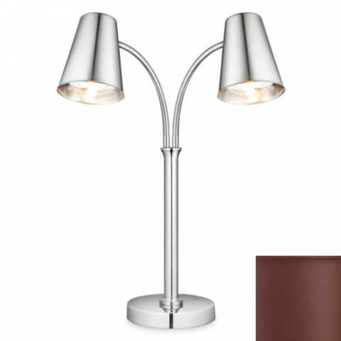 Double Heat Lamp, 9" L X 9" W X 27" H, Round, (2) 250 Watt Bulbs, Portable/Countertop/Freestanding, Adjustable Flexible Neck, Stainless Steel, Burntumber Finish, 110V/60/1-Ph, 4.4 Amps, 500 Watts, 5' Cord, Nema 5-15P (Daisy Chain Capable)