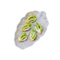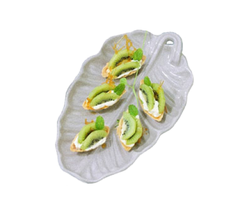 Serving Platter, 6-3/4" x 12", leaf design, aluminum with ceramic-look coating, Sandstone, Allergen Lavender, NSF