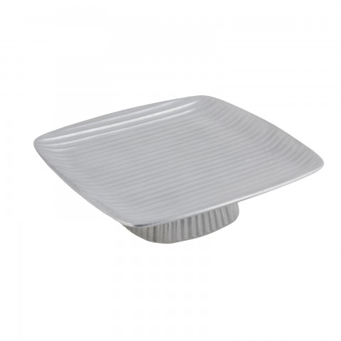 Platter, 12-1/2"x 12-1/2" x 3" H, ribbed, footed, Pewter Glo finish