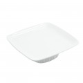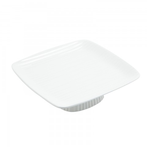 Platter, 12-1/2" x 12-1/2" x 3" H, ribbed, footed, Sandstone, Tan