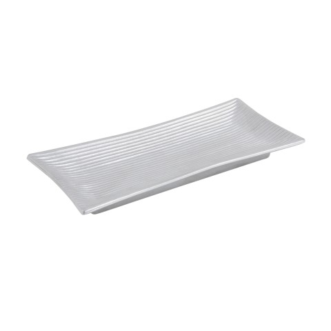 Platter, 6-1/2" x 14", footed, ribbed, Pewter-Glo finish