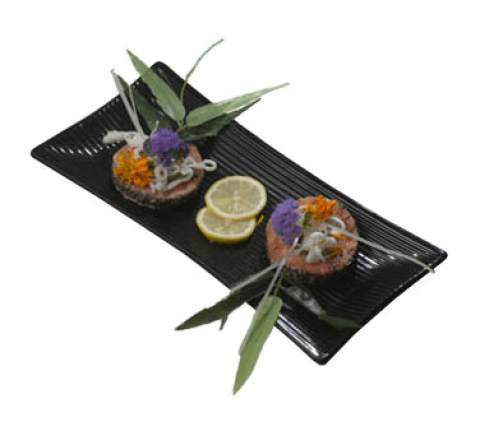 Platter, 6-1/2" x 14", footed, ribbed, Sandstone, Smoke Gray