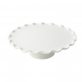 Cake Stand, 13-1/2" dia. x 4"H, round, scalloped, with pedestal, Sandstone, Pearl White