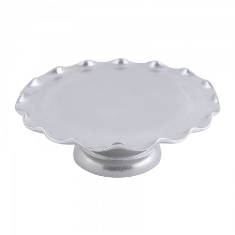 Cake Stand, 11" dia. x 4"H, round, scalloped, with pedestal, Pewter-Glo finish