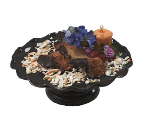 Cake Stand, 11" dia. x 4"H, round, scalloped, with pedestal, Sandstone, Pearl White