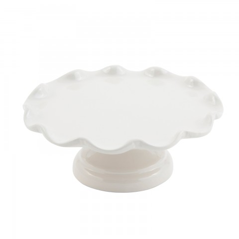 Cake Stand, 8" dia. x 3"H, round, scalloped, with pedestal, Sandstone, Harvest Gold